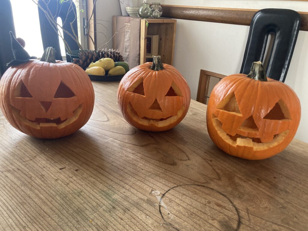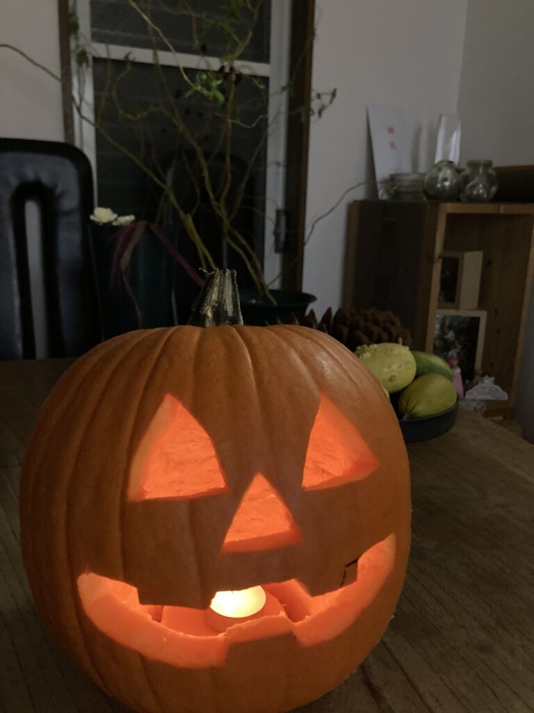 今年のハロウィンは、初めて大きいカボチャでランタンを作ってみました